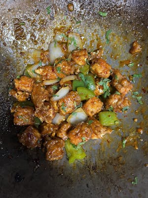 Loved the Fish Curry with basmati rice and the Assorted Snacks from the appetizer menu (two samosas with onion baji, veg pakoras and two chutneys that could have been a meal by itself). Need to bring my own compostable to go box next time!